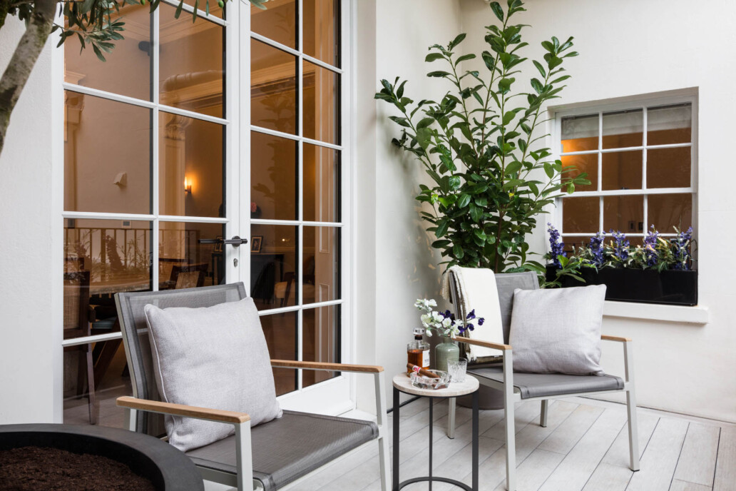 An immaculately restructured and re-built Grade II listed duplex apartment occupying the Raised Ground and Garden level in a beautifully tranquil position in the centre of the Southern terrace of this most coveted address in Belgravia and interior designed with an uncompromisingly tasteful aesthetic.