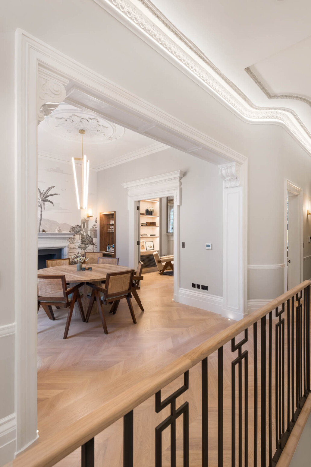 At over 2,200 sq ft (200 sq m), with ceiling heights of just under 4m on the upper floor the property offers substantial lateral living in a period setting with the very special benefit of its own private porticoed entrance and private landscaped garden delivering the feeling of a house.