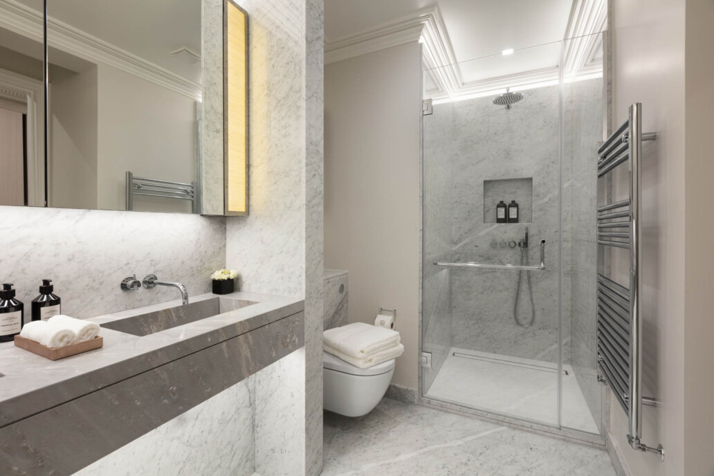 Offering very well balanced accommodation and unusually wide reception spaces with separate living and dining areas, lavish Principal bedroom suite, 2 further bedroom suites and south facing terrace the apartment provides outstanding light and volume and has been appointed with every comfort for luxurious living.